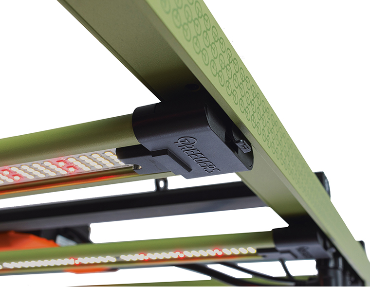 With uniform light distribution, hotspots are avoided and even growth is encouraged because every plant receives the same quantity of light. The photon effectiveness of a lighting system measures the quantity of light energy (measured in micromoles) that is delivered per unit of power consumed. Treegers offers extremely high light output with fixture efficacy of up to 3.1 μmol/J, utilizing diodes with an efficacy of up to 4.35 μmol/J on the GL+ fixtures.